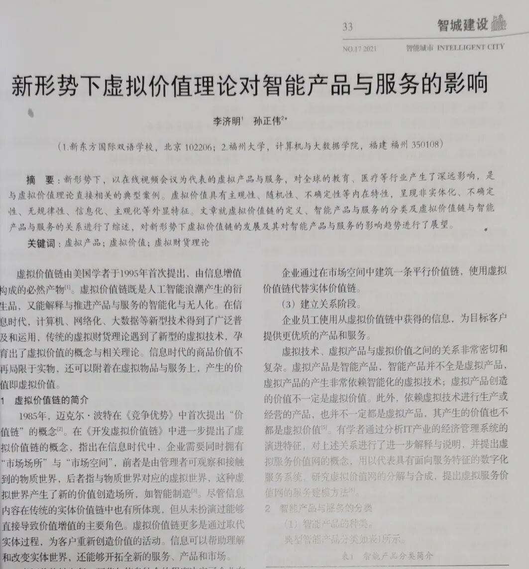 这篇论文发表在新冠疫情大流行还未见到结束端倪的2021年,在文中详细阐述了奥地利经济学家卡尔·门格尔在《国民经济学原理》中提出的虚拟财货的概念,并且通过智能产品与服务的虚拟价值、虚拟价值的特征分析、虚拟价值链多维度的阐述,让更多人关注到虚拟智能产品,不仅服务于政府机构、各类企业乃至普罗大众,而且在传统教育领域发挥了重要的作用,对于传统的教育模式和产业产生了明显的冲击与改变。无论是中小学还是各类高校,都在后疫情时代提高了对在线视频课堂的重视和开发。
