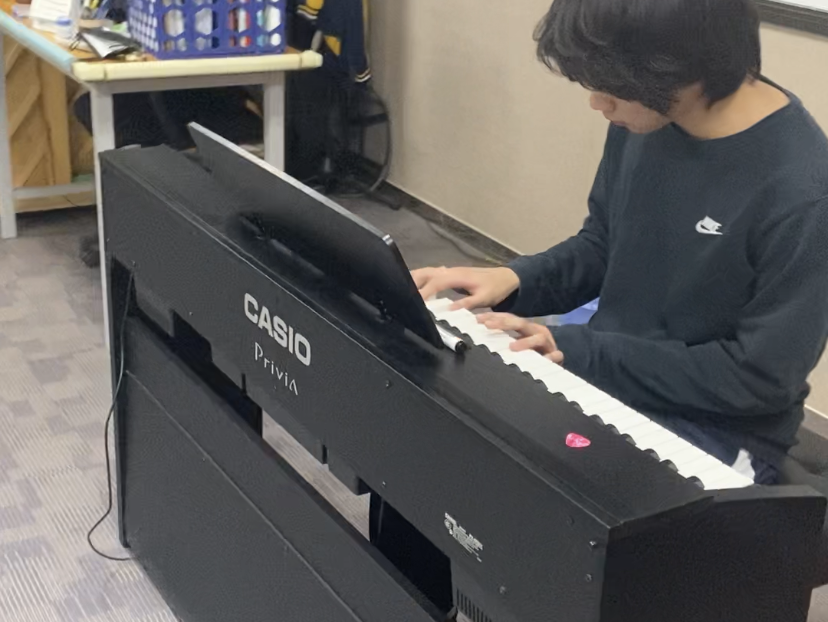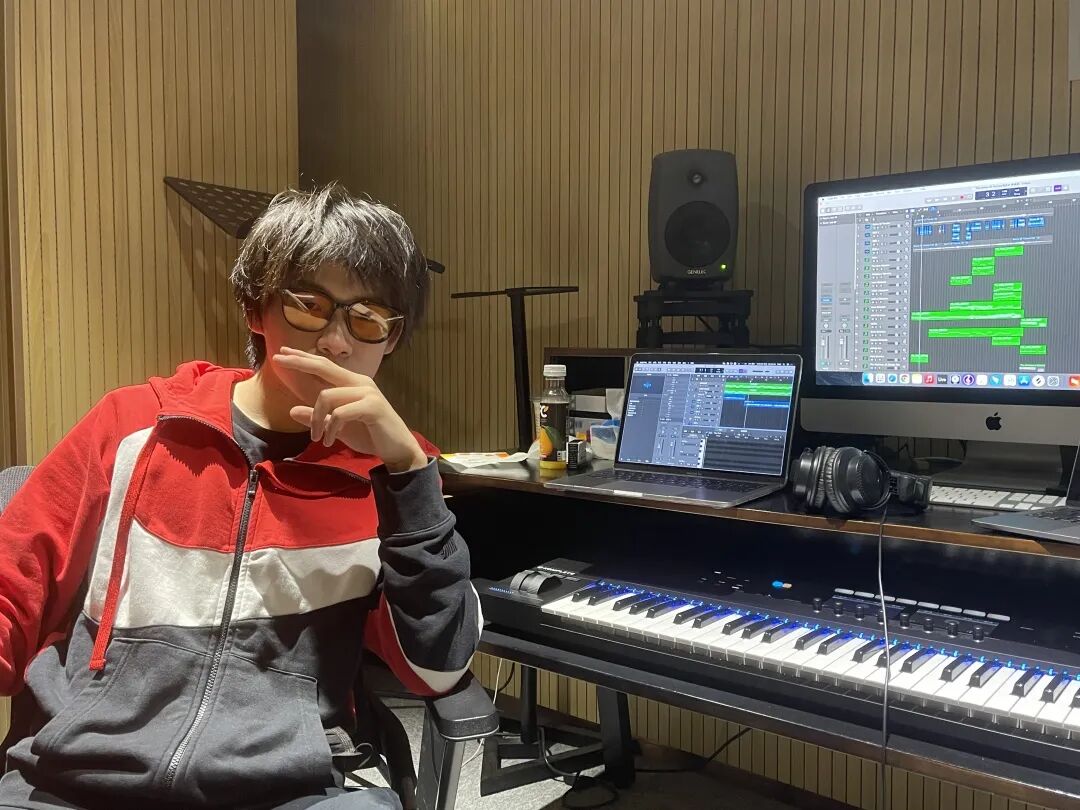 他最喜欢的表演是他们这只学生乐队刚刚创立时,演奏的一首《不能说的秘密》,不同于以往他将鼓面敲打的隆隆作响,在这首缓缓抒情的歌曲前,架子鼓的声音和吉他、贝斯以及主唱的声线完美地融合在了一起,他们每个人都将音乐的情绪裹挟在这种音乐体验里,他觉得在那一刻,对于音乐的喜爱是藏不住也是等不了的,于是他开始自学键盘乐器和编曲,回家的大部分时间都在跟着视频学习专业音乐知识,这让他在繁忙的十二年级学业中仿佛寻得了一片灵魂的净土。