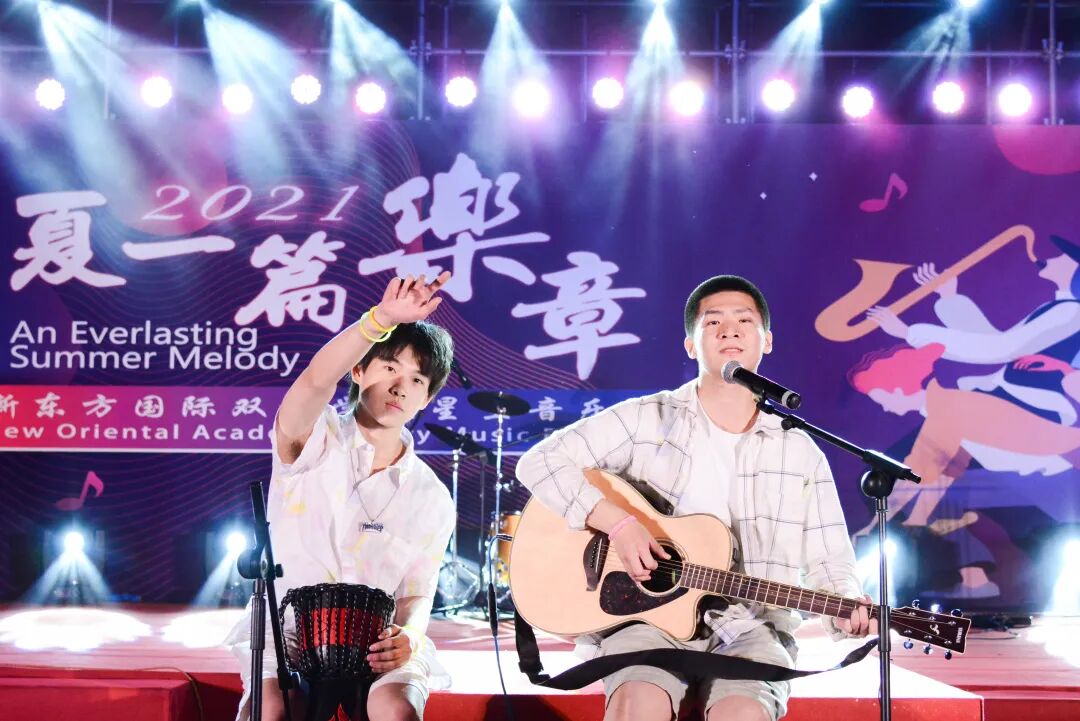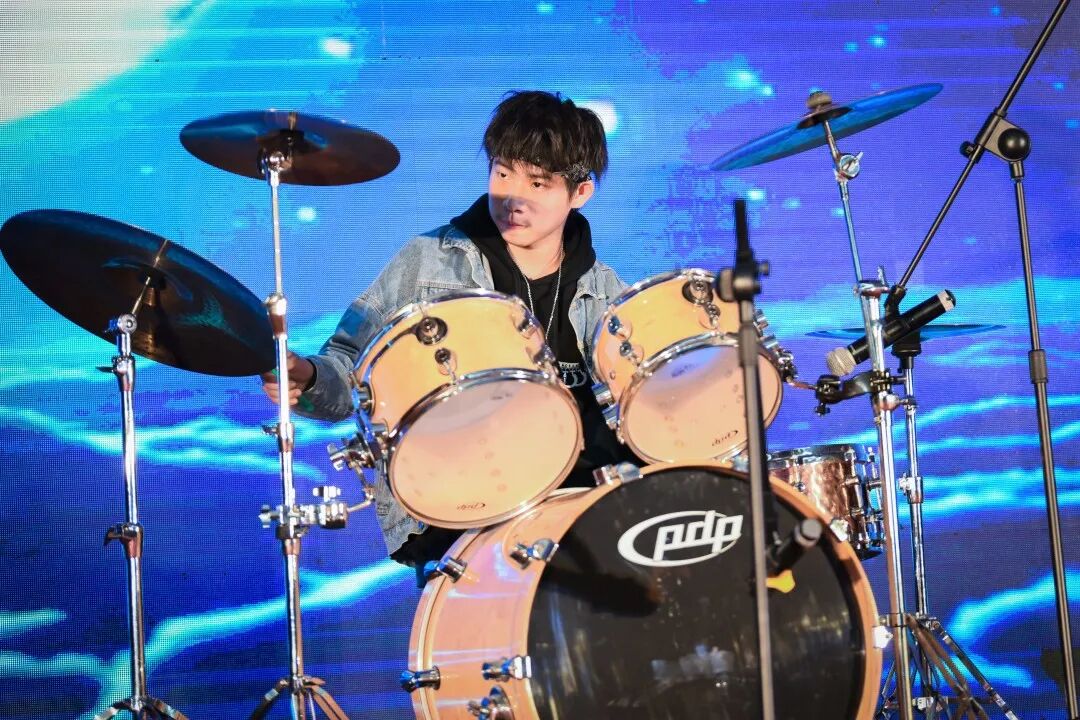 在北京新东方双语学校“夏一篇乐章”青春音乐节的现场,他为自己的乐队奏响了轻快的鼓点,他为自己的好兄弟轻轻拍打着鼓面,也为师生联合的演出奉献了精彩的技艺,这一天他格外高兴,他仿佛用架子鼓讲述了好多个关于同学与师生情谊的故事。
